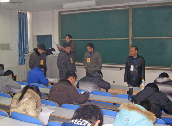 1月14日上午,校领导剧乂文、张胜利、窦效民、龚毅、陈江风、吕彦力、赵继红、安士伟、李世瑛在教务处和学生处负责人的陪同下,分两组来到东风校区和科学校区期末考试现场,对考试安排、氛围营造、考场秩序、标准化考场使用及后勤保障等工作进行了检查和指导,看望了认真工作的监巡考老师和沉着答题的广大学生。