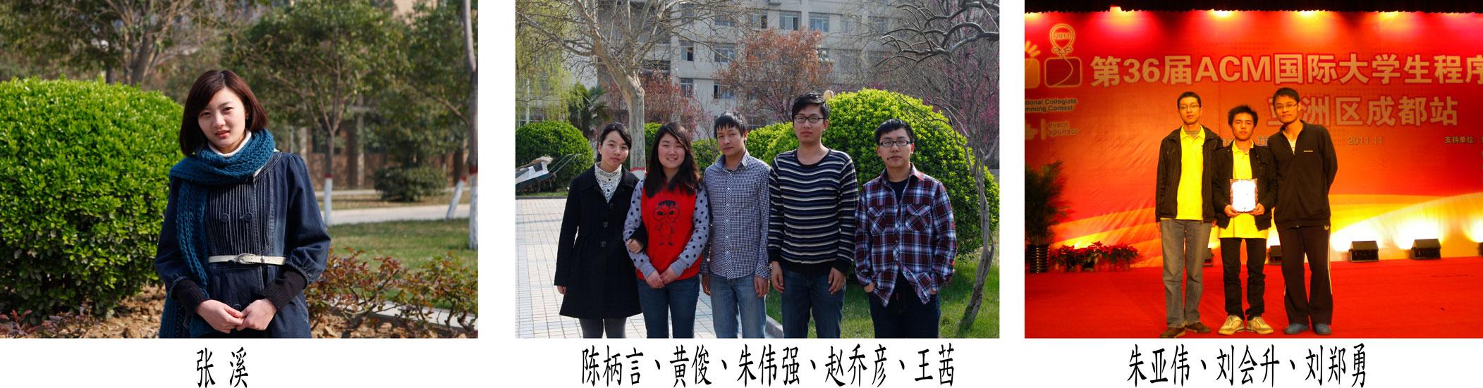 朱亚伟,刘会升,刘郑勇,计算机与通信工程学院2009级学生,2012年组队参加了第36届ACM国际大学生程序设计竞赛,获得亚洲区三等奖。