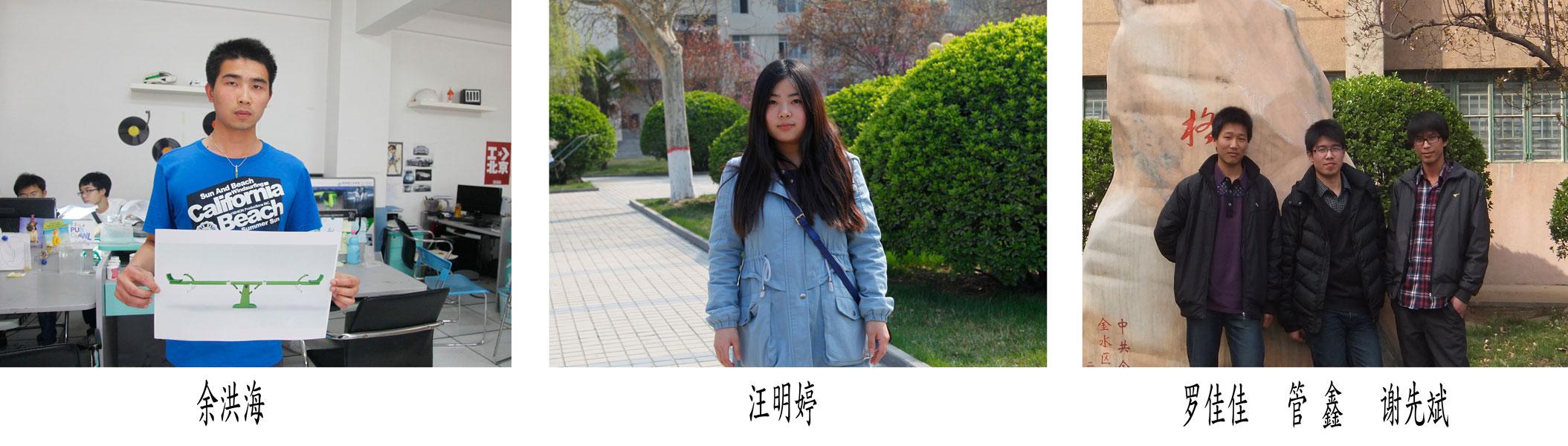 陈柄言,黄俊,朱伟强,赵乔彦,王茜,艺术设计学院工业设计专业2009级学生。2012年组队参加全国大学生工业设计大赛,获全国二等奖。