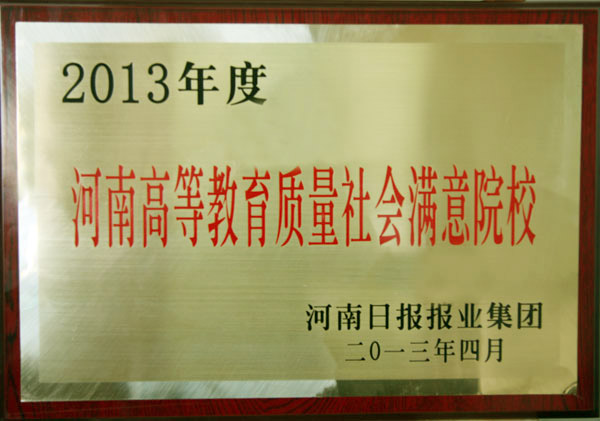 日前,河南日报报业集团主办的河南高等教育质量社会满意院校大型调查评选活动结果揭晓,我校成功入选2013年度“河南高等教育质量社会满意院校”,表明我校建设发展成就受到了社会各界的关注和认可。