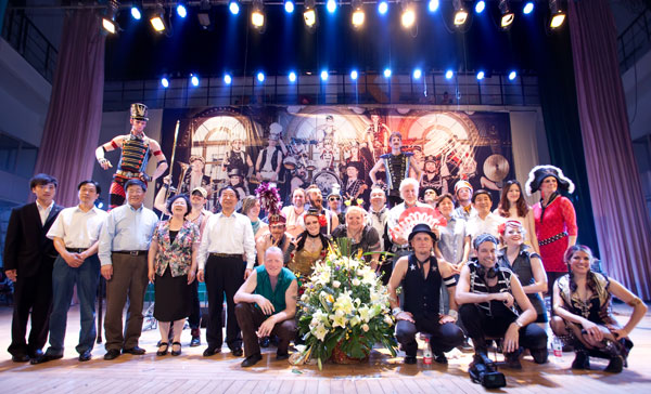 演出结束后,文化厅领导、校领导走上舞台向演员们表示祝贺并合影留念。
