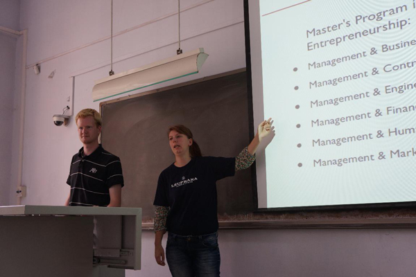 9月7日上午,来自吕讷堡大学的学生与我校部分学生进行了一场互动交流活动。吕讷堡大学的同学每两人一组,分别就德国概况、德国的教育体制、吕讷堡市和吕讷堡大学四个专题进行了介绍。他们的介绍准备充分、声情并茂,赢得了我校同学的阵阵掌声。交流会上,我校参加吕讷堡大学夏季短期学习班的学生代表也讲述了这次德国游学的整个过程与学习收获,并回答了同学们关于此项目的提问。