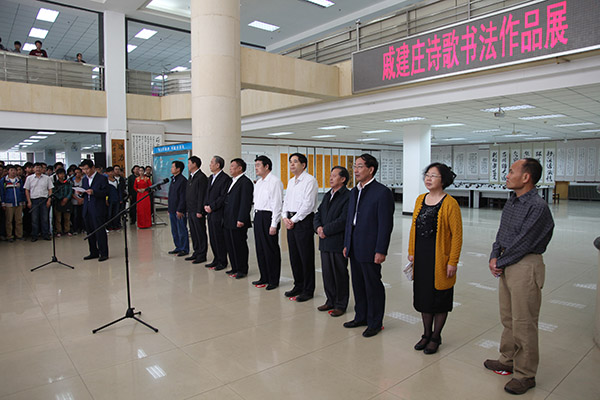 10月14日,“戚建庄诗歌书法作品展”在我校举行。省人大常委会副主任储亚平,省政协副主席靳克文,省人大常委会内务司法工作委员会主任、中国书法家协会常务理事桑金科,海南省人大原副秘书长、财经委员颜家安,学校领导剧乂文、石恒真、张胜利、窦效民、陈江风、李世瑛等出席开幕式并参观展览。河南省书法界的专家同仁、我校部分师生代表参加开幕式并参观展览。