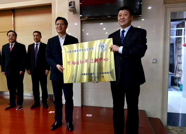 谢伏瞻省长为我校牵头的“环境污染治理与生态修复河南省协同创新中心”授牌