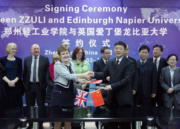 在校期间,诺兰校长一行参观了我校科学校区,对我校河南省表界面科学重点实验室、国家烟草专卖局烟草行业烟草工业生物技术重点实验室给予了高度评价,希望双方在实验室建设和科学研究领域有进一步的合作交流。访问间隙,诺兰校长一行还参观了我校荣誉展厅,会见了即将到爱丁堡龙比亚大学学习的我校学生以及正在我校学习的爱丁堡龙比亚大学的学生。