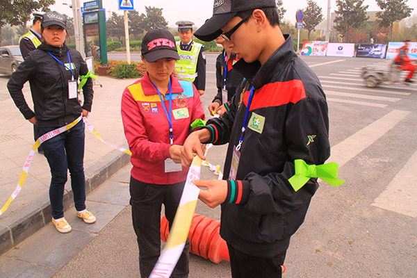 本次马拉松大赛我校派出了两支队伍参加志愿服务,其中,校青年志愿者协会的45名志愿者负责参与在郑东新区CBD商务外环开跑的小马拉松外围秩序维护,国际教育学院的45名志愿者参与了在马拉松半程终点的志愿服务。