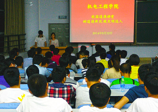 5月12日晚,学校文明办主办、机电工程学院承办的“道德讲堂”活动在东风校区教三楼301教室举行。活动以“树道德新风,做文明达人”为主题,该院分团委老师和2013级学生参加了此次活动。