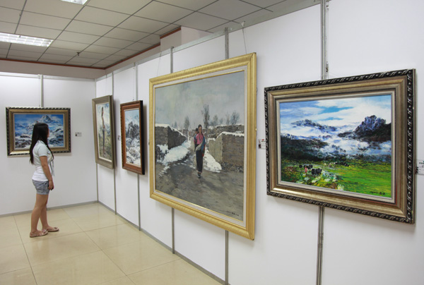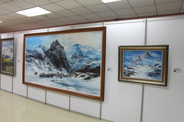 蔚国银先生是从河南走出去的油画家,多年来,他坚持深入雪域高原感受生活、收集素材,足迹踏遍西藏、青海、云南、甘肃和四川,不畏艰险、风雪无阻,经过几十年的磨练和积累,逐渐摸索出以雪域高原为主题的油画作品,展开了对雪域高原一往情深的歌颂,形成了独树一帜的创作风格。4年前,他冠名以“情系家乡”为主题的巡展,从其老家河南周口开始,展过了河南的12个地市及多所高等院校,进而展到青海、甘肃和陕西等地,此次展览是系列展览的第49站。