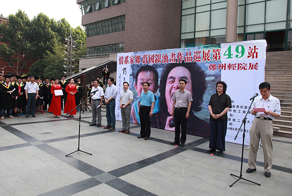 6月5日上午,“情系家乡·蔚国银油画作品巡展”第49站我校东风校区图书馆二楼大厅开展。蔚国银先生、华北水利水电大学党委副书记石品、河南宏远拍卖有限公司董事长张传文、郑州师范学院美术学院院长王西军,我校党委书记剧乂文、党委副书记窦效民、副校长安士伟等领导和嘉宾出席开幕式。相关专业师生参加开幕式并参观展览。党委副书记窦效民主持开幕式。