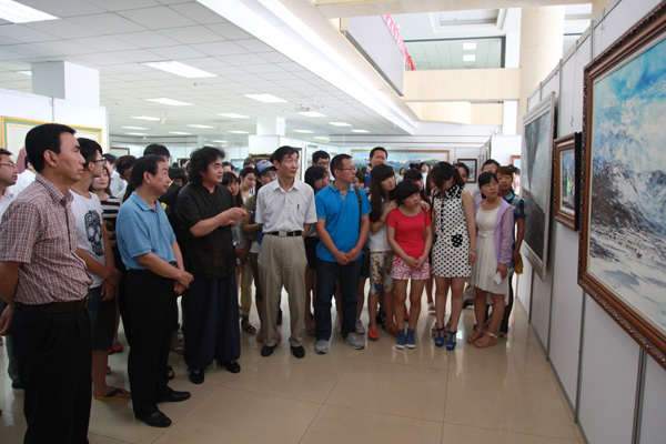 剧乂文书记在开幕式上致欢迎辞,对蔚国银先生在我校举办油画展表示感谢,对出席油画展开幕式的领导和嘉宾表示欢迎。他表示,学校多年来高度重视校园文化建设,重视培养和提高师生员工的文化艺术修养,蔚国银先生的油画展在我校举办必将受到广大师生欢迎、取得圆满成功。