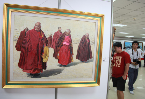 此次展出的50余幅作品多是以雪域高原为主的人物和风景画面,其中大部分是蔚国银先生四年来的新作,全面地展示了他的艺术创作能力和艺术才华,表达了中华民族的文化精髓。展览将持续到6月11日结束。