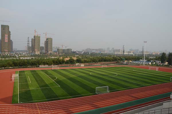 体育场体育建筑等级为丙级,总建筑面积4496平方米,总座位数4314座,体育场全天候型材塑胶地面9043平方米,场地选用国际标准8道跑道,半径36.5米,周长400米。同时设有田赛区域和投掷区域。田径场内设一块标准足球场地,长105米,宽68米,采用人工草坪。看台罩棚采用空间网架结构,造型轻巧美观。看台座席分为八个区域,设有主席台。室外可供体育课教学、课外体育活动、大型集会和综合性田径运动会使用,配套有大型彩色电子显示屏和条幅显示屏、高杆照明灯和高保真音响系统。室内建筑为体育操训用房、体育器械库房、教师办公用房、活动用房和各种功能房等。