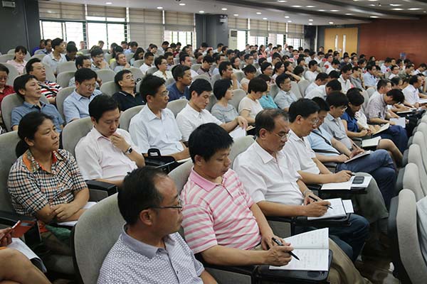 石校长对下半年学校重点工作进行了强调和部署:第一,坚持以学科建设为龙头,不断提升学校核心竞争力;第二,坚持以专业结构优化为契机,全面提升人才培养质量;第三,坚持以高水平科研项目和科研成果为目标,进一步提升科技创新能力;第四,坚持“人才强校”战略工程,不断提高师资队伍整体水平;第五,坚持以基本建设为重点,进一步改善办学条件;第六,加快推进内部治理体系现代化,进一步提升学校管理水平;第七,深入持续开展党的群众路线教育实践活动,全面加强党的建设。