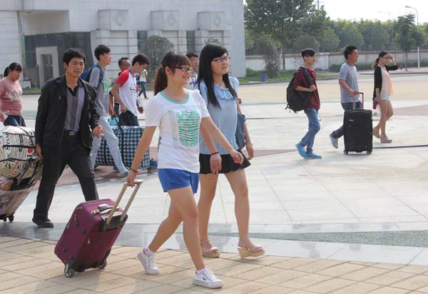 荷花映日喜迎八方学子,绿树摇曳共祝美好明天。9月3日-4日,我校迎新工作顺利进行、圆满结束,6000余名2014级新生报到入学,开启了他们的大学生涯,也为蓬勃发展的郑州轻工业学院注入了新的活力。