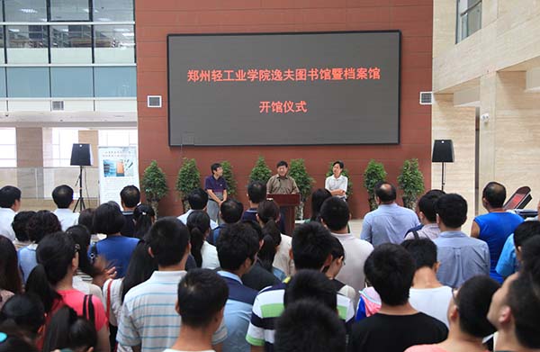 副校长龚毅介绍了逸夫图书馆的建设情况。他说,列为省级重点工程的逸夫图书馆、档案馆自2011年4月动工,在学校党委、行政的高度重视下,在相关部门的支持配合下,经过参建各方的共同努力,圆满完成了各项施工安装、室内外装饰、室外工程施工安装、环路配套建设、家具设备采购安装以及图书档案资料搬迁等任务,可以为科学校区广大师生提供信息、阅读、学习、交流、会议等多项服务。逸夫图书馆馆舍建设注重高度现代化的同时,增加了人文陶冶的精神内容——红酸枝木雕书法作品《兰亭序》、风景油画《大黄河》以及紫铜浮雕《传承》等三件大型艺术作品陈列于二楼共享大厅,彰显了中华文明和轻院特色,进一步烘托了图书馆的文化影响力和艺术感染力。他号召广大师生要爱护图书馆、珍惜图书馆,更好地利用图书馆。