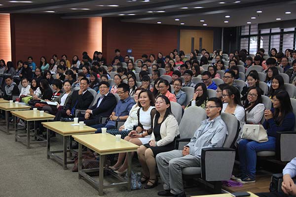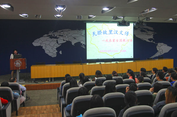 报告团成员通过自身参与孔子学院工作的经历,讲述了他们在海外推广汉语教育和传播中华文化的感受,他们精彩的演讲不时引起台下师生的阵阵喝彩。