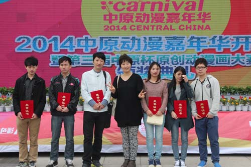 日前,由河南省文化厅、河南省教育厅、河南日报报业集团联合主办的2014中原动漫嘉年华启动仪式暨第三届“中原杯”河南省原创动漫画大赛颁奖典礼在郑东新区客家文化广场举行。大赛共设置奖励73项,其中一等奖7项,二等奖16项,三等奖30项,优秀奖20项,组织奖5项。我校师生表现优异,共获一等奖2项,二等奖4项,三等奖3项,优秀奖2项。我校是唯一获得一、二等以上奖励的高校,且获奖总数最多,也是荣获了大赛组织工作奖的两所高校之一。