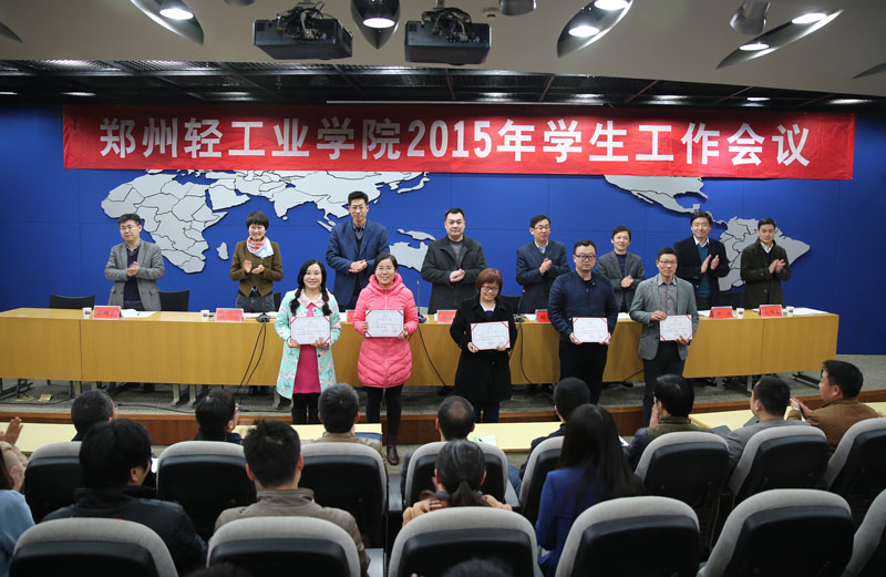 会议对上年度学生工作系统先进单位和个人进行了表彰。艺术设计学院等6个院(系)被授予学校2014年学生工作创新奖。材料与化学工程学院等5个院(系)和王静等14名同志分别被授予2014年学生资助工作先进单位和先进个人。