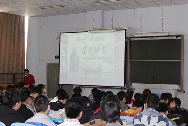 4月16日,为扎实推进学校精神文明建设,增强思想道德建设的吸引力和亲和力,由校文明办主办的“道德讲堂”系列活动走进机电工程学院。该院部分教师和学生参加了在东风校区教三楼301举行的活动。