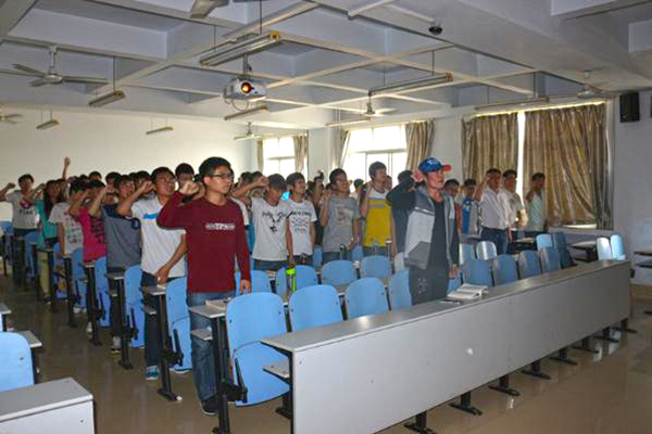 本次活动共由“六个一”环节组成,包括“诵读一段经典”、“唱一首歌曲”、“看一个短片”、“讲一段故事”、“开展一次互动”、“撰写一些心得留言”。伴随着舒缓悠扬的音乐,活动在现场同学齐“诵经典”中拉开帷幕。“大学之道,在明明德,在亲民,在止于至善…… 欲修其身者,先正其心。欲正其心者,先诚其意。欲诚其意者,先致其知;致知在格物”。在诵读经典语句的过程中,同学们沐浴着道德的洗礼,感悟着经典的魅力。在唱一首歌曲环节,大家齐声高唱《爱的奉献》,感受爱的力量。在主持人带领下,同学们观看了2015年“感动中国”十大人物评选颁奖典礼视频。在“讲一段故事”环节,李俊丰老师向大家讲述了道德模范黄来女、孟佩杰和张小元的感人故事。模范人物的先进事迹令同学们倍受震撼,多位同学结合自己的经历讲述了自己在深入了解道德模范事迹后的收获和感动,进而引发了现场师生围绕“什么样的人生才有价值?什么样的大学生活才有意义?”的大讨论。