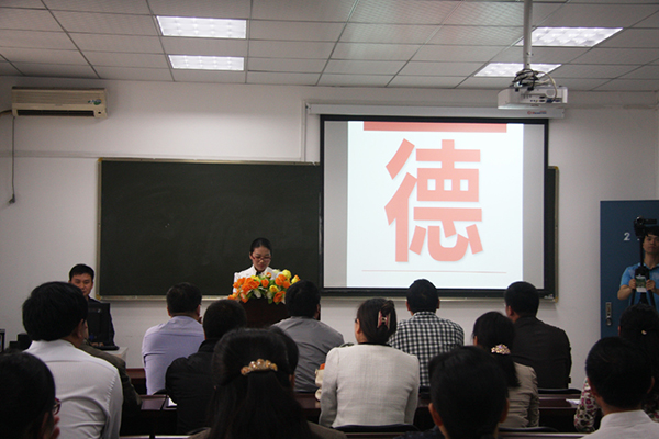 此次活动由“自我反省、唱一首歌曲、诵一段经典、看一部短片、讲一个故事、谈一番感悟、做一份承诺、行崇德礼”八个环节组成。活动在自我反省中拉开帷幕。省身是一种自律,一种修养,在自省中,我们停下前进的脚步,叩问心灵,让灵魂追上疲惫的身体,这便是师德讲堂的第一要义;《长大后我就成了你》唱出所有教师儿时的纯真梦想,动情地传达出为人师者幸福的心声,体会了老师无怨无悔的奉献精神和培养教育祖国接班人的崇高责任感;该院总支副书记张阳领读了韩愈《师说》中的选段,“人非生而知之者,孰能无惑?”答疑解惑的人正是教师;看一部短片环节,集体观看了“最美女教师张丽莉”的感人事迹,短片再现了张丽莉以爱心育人的教学场景、奋不顾身救人的英勇瞬间及手术后坚强乐观的康复生活;接着“以身边人讲身边事,身边人讲自己事,身边事教身边人”为主要形式,邀请我院徐雅静、职桂珍、张新敬三位老师讲述了他们自己的故事。