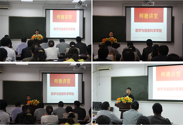 5月7日下午,数学与信息科学学院在东风校区东一楼216室成功举办了以“弘扬高尚师德 传递教育正能量”为主题的“师德讲堂”活动。此次活动是学校文明办倡导的“道德讲堂”的创新形式,目的是弘扬高尚师德,传承师德精神,推进该学院师德师风建设和精神文明建设。该学院全体教职工参加了活动。