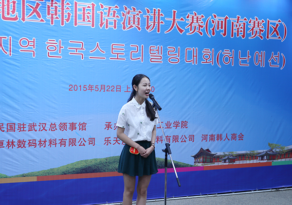 5月22日,由韩国驻武汉总领事馆主办、我校承办的2015华中地区韩国语演讲大赛(河南赛区)在东风校区图书馆学术报告厅成功举行。