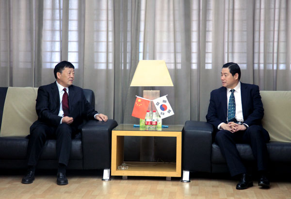 赛前,校党委书记石恒真教授会见了郑载男总领事一行,双方进行了亲切会谈。石书记介绍了我校发展的基本情况,指出学校重视与韩国高校的学术、文化交流并取得了明显的成效,双方对现有的合作情况给予高度评价,并期待进一步深化韩国高校与我校的文化交流及项目合作,以促进韩国与河南地区的教育科技文化交流。