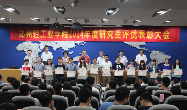 出席的校领导及相关部门负责人为2014年河南省优秀硕士学位论文获得者及其指导教师、2014年研究生国家奖学金和学业奖学金获得者以及研究生科研先进个人、优秀研究生、优秀研究生干部、科技竞赛奖等获奖师生代表颁奖,并向他们表示热烈祝贺。随后,指导教师代表、获奖研究生代表先后发言。