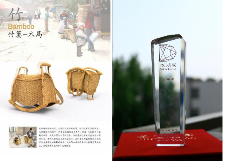 获奖作品由艺术设计学院工业设计系屈新波、崔晓飞两位老师进行指导。作品设计思路是:在偏远山区,儿童的生活非常艰苦,他们没有太多的玩具,无法像城市孩子一样享受优越的成长条件《竹篓-木马》赋予竹篓新的功能,是竹篓与木马的结合当竹篓倒过来时能成为一个竹木马,可供儿童坐在上面玩耍娱乐。作品旨在用最低的成本让山区儿童获得就地取材的娱乐,让他们在艰苦的生活里获得更多的快乐,同时提升传统手工艺的价值。