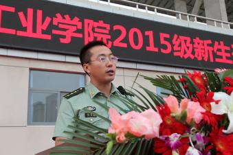 校长赵卫东教授发表了热情洋溢的讲话。赵校长首先代表全校师生员工向2015级新同学表示热烈欢迎,向长期以来大力支持我校学生军训工作的71834部队官兵表示诚挚感谢。赵校长从四个方面向新同学们介绍了郑州轻工业学院——既“小巧精致”又“规模宏大”,既“朝气蓬勃”又“学术厚重”,既“朴实无华”又“特色鲜明”,既“服务地方”又“面向世界”。他告诉新同学,“为之则易 不为则难”是我们的校训,在校训精神的激励下,历代轻院人艰苦奋斗、创业图强、负重致远、薪火相传。