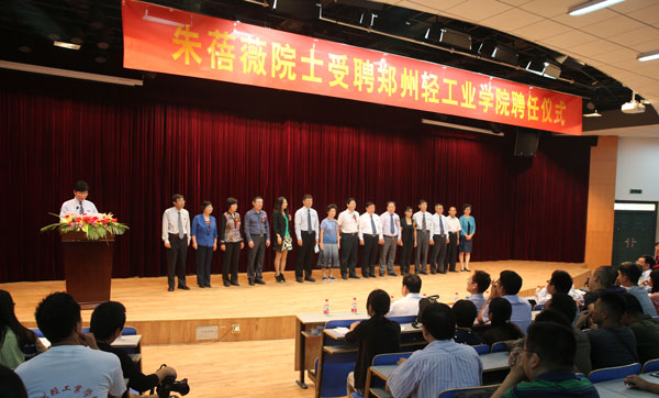 朱蓓薇院士在聘任仪式上讲话。她认为,近年来郑州轻工业学院在学科建设、人才队伍建设、人才培养和科学研究等方面取得了很大成绩。她表示,很高兴受聘郑州轻工业学院今后将尽自己的一份力量,与团队其他成员一起学校教育教学、科学研究和科学技术的产业化等方面的发展做出贡献。