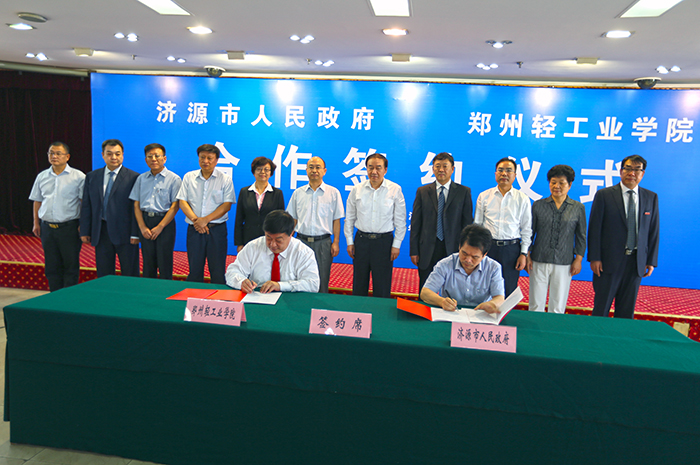 9月15日上午,郑州轻工业学院与济源市人民政府战略合作签约仪式在济源市举行。河南省人民政府副省长徐济超、副秘书长黄布毅,省教育厅副厅长尹洪斌,省科技厅副厅长张代民、总工程师李密科,济源市委书记宗长青、代市长张宇松,我校党委书记石恒真、校长赵卫东、副书记尚宝平、副校长吕彦力等出席仪式。济源市职业技术学院党委书记赵学通、院长陈学军、我校相关职能部门负责同志、济源市政府组成部门主要领导等参加仪式,共同见证双方战略合作协议的签署。济源市副市长刘庆芳主持签约仪式。