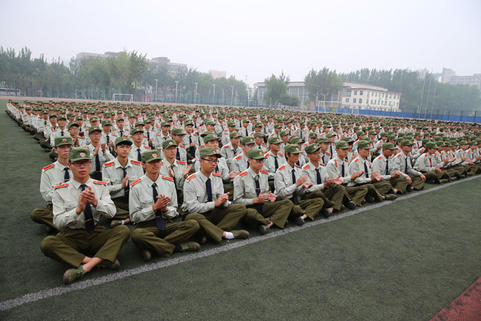 校领导石恒真、赵卫东、张胜利、窦效民、尚宝平、安士伟、王新杰、李世瑛,承训部队首长,相关职能部门和各院系负责同志参加大会并观看新生军训成果汇报。