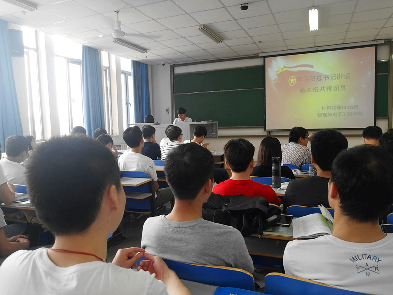 为深入学习贯彻习近平总书记系列重要讲话精神,切实增强团员意识,物理与电子工程学院组织开展“学习习近平总书记讲话,做合格共青团员”主题团日活动。