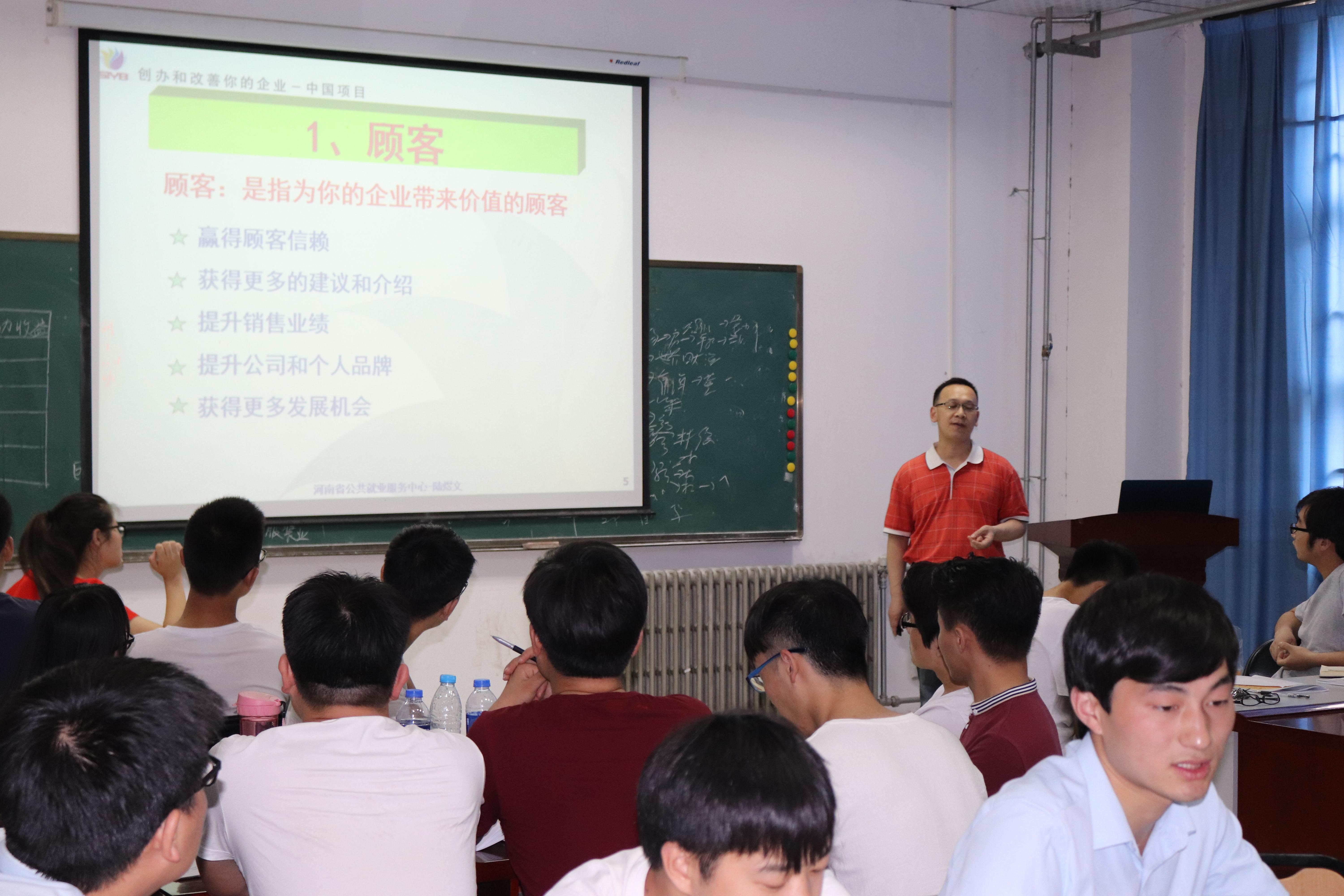 为进一步提升学生的自主创新精神、创业意识、创业积极性及创业能力,我院与河南省人力资源和社会保障厅、河南省教育厅协商,于2017年5月28日、29日,在计算机楼109、413和417室举行了大学生GYB创业培训,此次培训共180名同学参加。