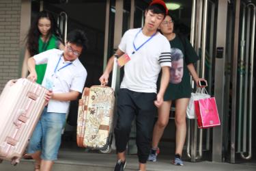 在毕业生离校期间,志愿者们每天早晨8点准时上岗,分别在3号、5号男生宿舍楼,1号9号女生宿舍楼前设立的服务台,为我院毕业生提供行李搬送、看护物品清理宿舍、帮忙撑伞等服务。尽管服务很繁琐重复,劳累辛苦,但我们的志愿者们依旧努力工作,从不懈怠。天气的炎热与沉闷,并不能阻止我们志愿服务的热情。三天时间,送近千名毕业生。一名大一的志愿者说:“说实话,那些学长学姐我都不认识,但是我知道离开轻院,离开这里生活了四年的家,肯定心里难受,我能做的不多,但我一定尽力做到我能做的一切。让他们知道轻院永远是他们温馨的家,我们都是轻院的兄弟姐妹,为自己的哥哥姐姐,再累也值了”。志愿服务期间,毕业生也不忘记对他们的叮嘱:“大学,很美好。但你们一定要认真学习自己的专业知识,做自己想做的事,不要让自己后悔。”