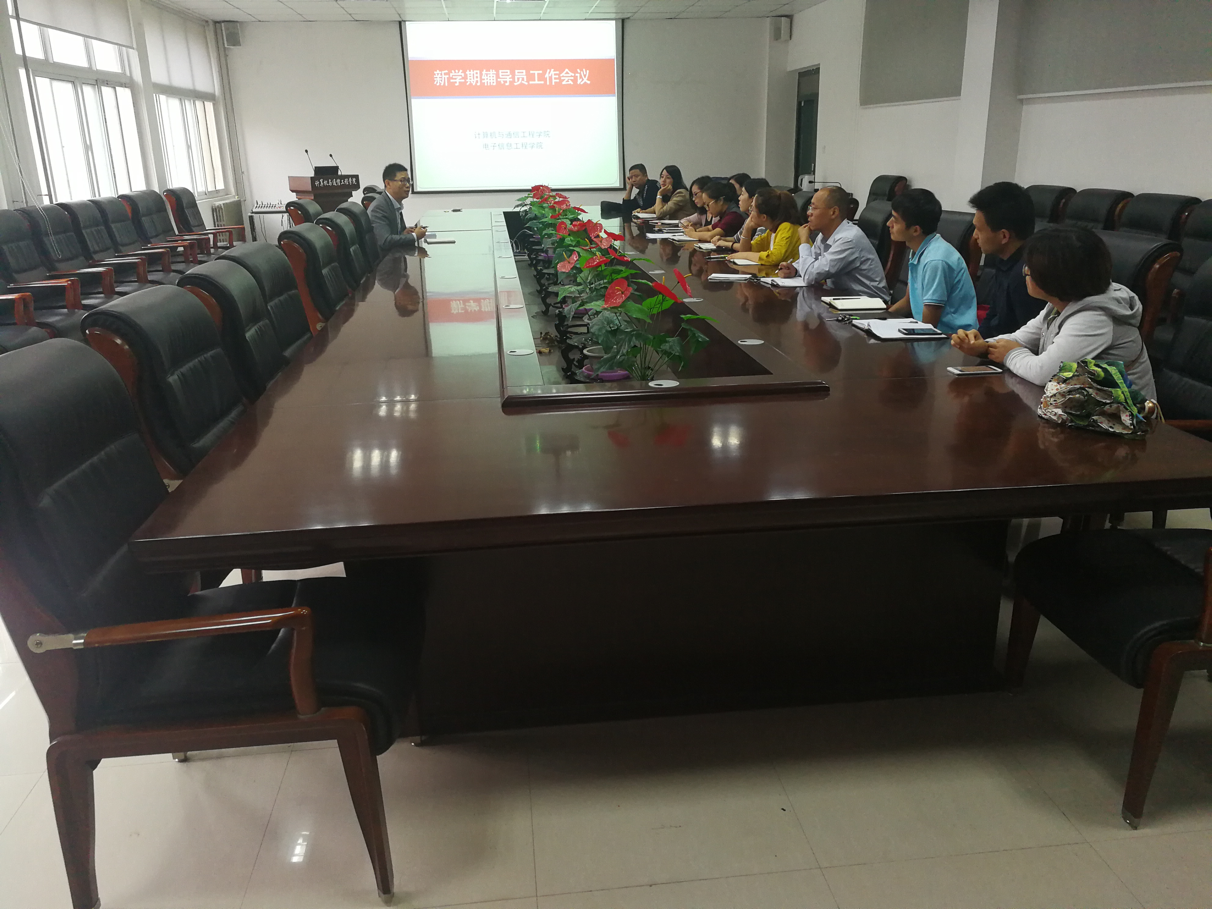 8月30日上午,计算机与通信工程学院(电子信息工程学院)在计算机楼213教室举行新学期辅导员工作会议。学院分团委书记沈高峰、学工办主任司丽娜及全体专职、兼职辅导员参加会议。