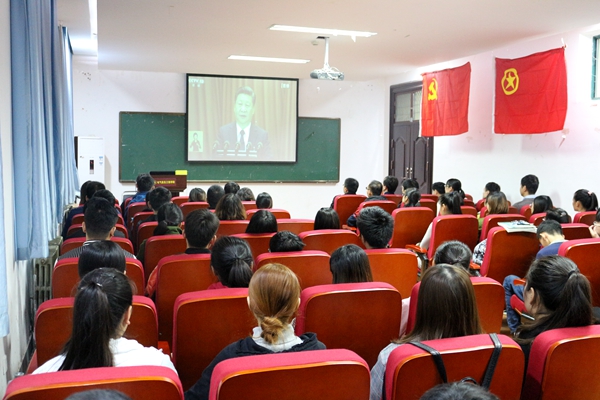 2017年10月18日上午9:00,中国共产党第十九次全国代表大会在人民大会堂隆重开幕。电气信息工程学院领导班子、党员代表、教师代表和学生代表在西二楼202集中收看本次开幕式直播盛况。