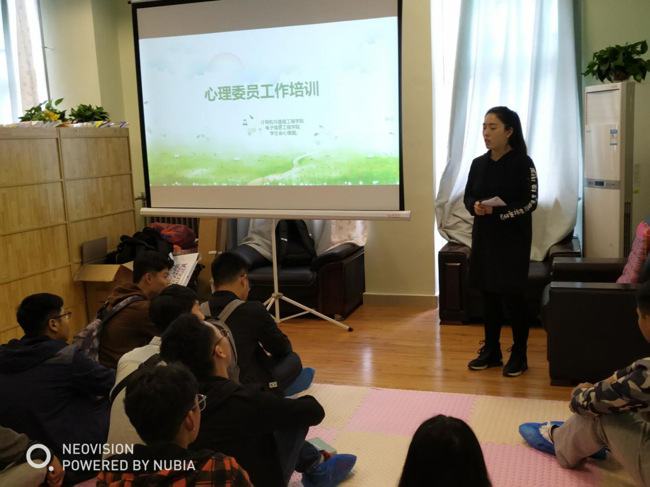 10月18日中午,我院心理健康专职辅导员司丽娜老师、田文老师在计算机楼200分别召开心理委员培训工作,16级、17级各班心理委员与院学生会心理部成员参与了此次活动。本次活动通过PPT展示、心理疏导等途径为大家讲解了大学生心理较易出现的一些问题,教导大家如何关注大学生心理健康。通过宣传心理健康知识,正确引导大学生合理规划日常生活、学习和工作,帮助同学们更好度过大学四年,促进学生全面健康发展,培养学生形成健全的人格,树立健康积极的人生态度。
