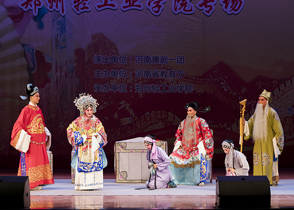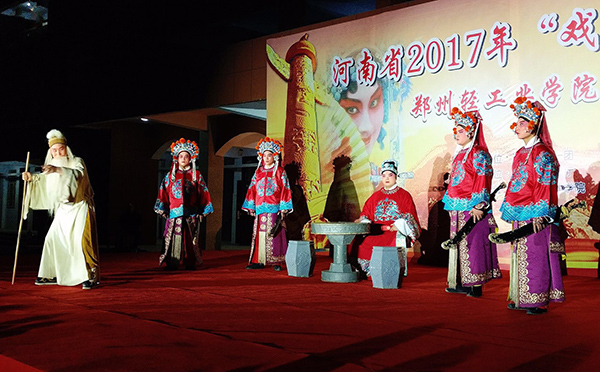 10月21日晚,2017年河南省“戏曲进校园”活动郑州轻工业学院专场在我校东风校区大礼堂隆重举行,场内座无虚席。来自河南省豫剧一团的艺术家们精心准备的一场美妙绝伦的戏曲艺术盛宴鸣锣开场。为了让大家更好地了解豫剧这一传统优秀文化,演出开始前,河南省豫剧团国家一级演员、著名导演陈国立老师为同学们分享了豫剧艺术的缘起、特点、表现魅力以及如何欣赏等;河南豫剧一团团长、国家一级演员、中国戏剧梅花奖得主、常派传人王惠老师表演了她的代表作《五世请缨》,并与现场同学们互动演唱了《花木兰》;表演艺术家魏俊英领衔,豫剧一团的艺术家们为现场观众倾情演绎了折子戏《三娘教子》,他们以精湛的演技将生动鲜活的人物和故事演绎得淋漓尽致。两个多小时的精彩演出,在观众经久不息的掌声中落下帷幕。