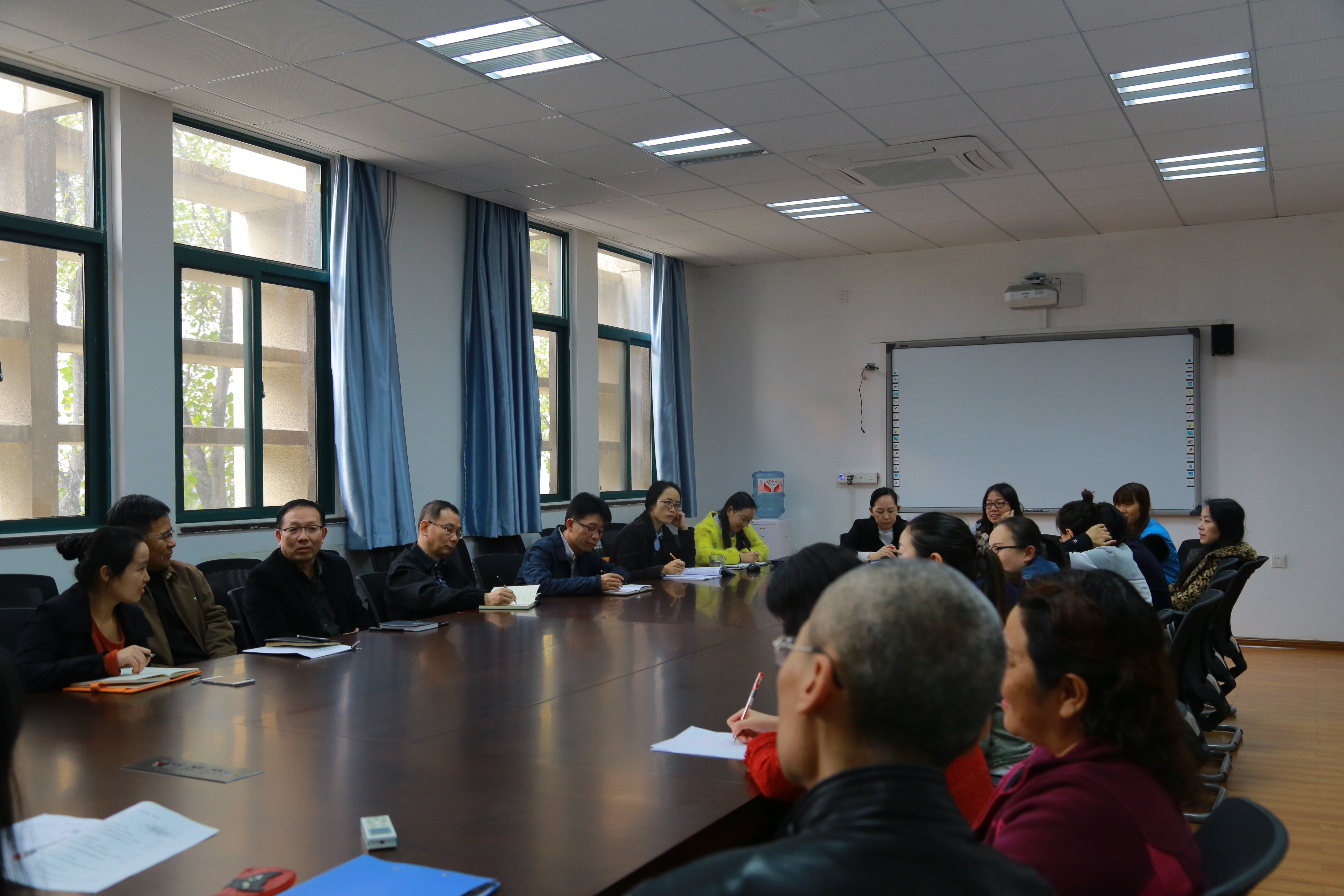 2017年11月9日下午,国际教育学院在教二楼325室召开了期中教师座谈会。国际教育学院党政领导班子、学院督导组及教师代表参加了座谈,会议由副院长黄敏教授主持。