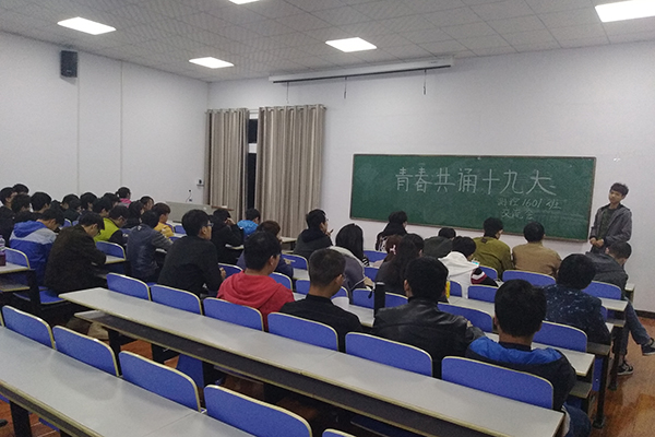 为全面深入学习党的十九大会议精神,贯彻落实习近平新时代中国特色社会主义思想,彰显共青团员在新时代的中坚力量,2017年11月27日晚,机电工程学院在禹州实习实训基地一号实训楼407教室开展了“青春共诵十九大”交流会,测控2016级全体学生参加了此次交流活动。