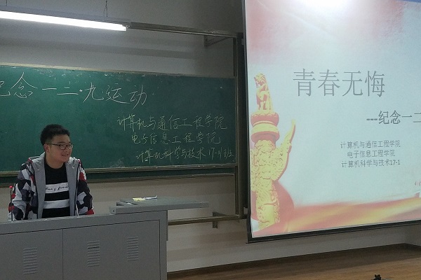 为纪念“一二•九”运动82周年,弘扬爱国主义和集体主义精神,增强青年学生的责任感、使命感。11月中旬,计算机与通信工程学院(电子信息工程学院)以班级团支部为单位举办了以“纪念一二•九,弘扬爱国精神”为主题团日活动。