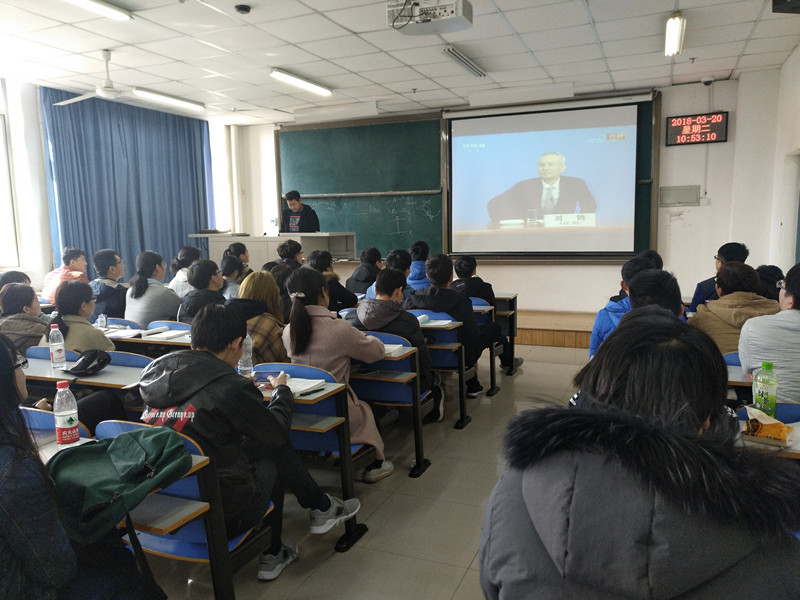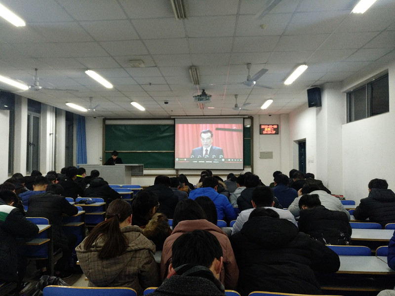 学院通过主题班会、主题团日活动和座谈会等形式,组织各班级、学生党员、入党积极分子观看了两会开闭幕式、习近平总书记进行宪法宣誓视频、李克强总理答记者问等视频,认真学习了习近平总书记在两会期间的重要讲话精神、《国务院政府工作报告》、《中华人民共和国宪法修正案》和《国务院机构改革方案》等内容。通过学习,同学们了解到国家在医疗、教育、税收、养老、环保、民生等方面的改革内容,对祖国和社会未来的发展充满信心、充满期待。活动中同学们围绕两会热点话题展开了热烈讨论,纷纷结合自身情况发表自己的看法,表示在今后的学习生活中将继续积极关注两会热点,了解国内外形势,认真思考,努力学习,勇担社会责任。