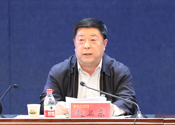 校长赵卫东作了题为《凝心聚力 乘势而上 奋力开创学校科技工作发展新局面》的报告。报告回顾了2013年以来我校在科技科研项目、科研奖励、服务行业发展、服务地方经济、建设科技创新平台、建设师资和科研队伍等方面的成绩。全面分析了我校科研工作建设的优势和特色,以及还存在的一些短板。他强调,我校科技工作的总体要求和目标是围绕建设高水平轻工业大学的奋斗目标,主动适应经济发展新形势,不断深化科技体制机制改革,以申报博士学位授权单位为契机,加快实施创新驱动发展战略,强化学科支撑、强化队伍保障、强化项目成果、强化平台构建、强化人才培养、强化哲社繁荣、强化机制创新、强化环境营造,对现有的科技政策进行全面梳理,进一步加强和规范科研经费管理,积极探索协同创新机制下校内科研资源配置的有效方式,不断提高科技创新能力。