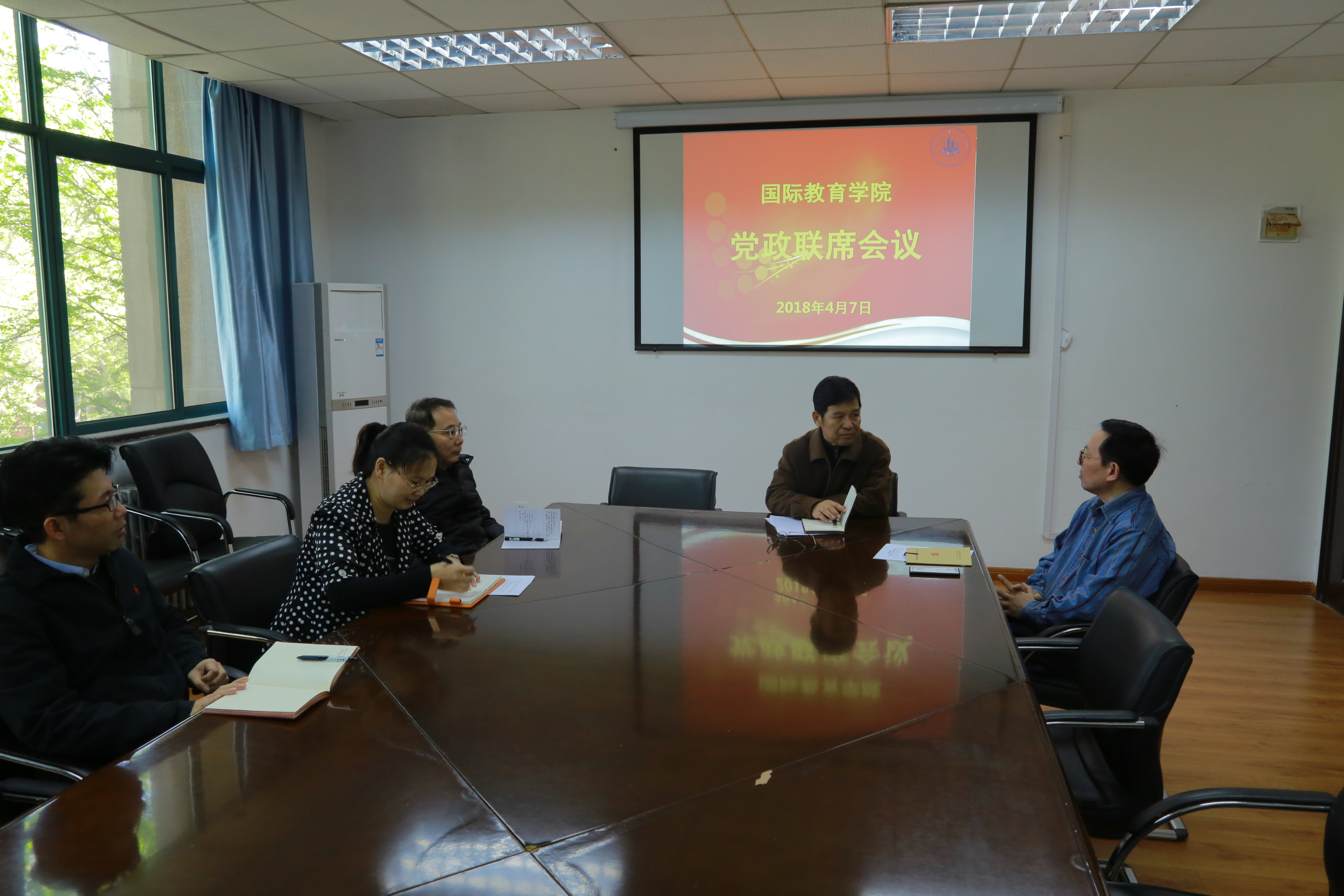 4月7日,国际教育学院在教二楼313会议室召开精神文明建设专题会议,安排2018年校级文明单位创建工作,研究部署学院2018年度精神文明建设工作。国际教育学院领导班子、党支部书记、科级干部参加了会议,会议由党总支书记戚俊清主持。