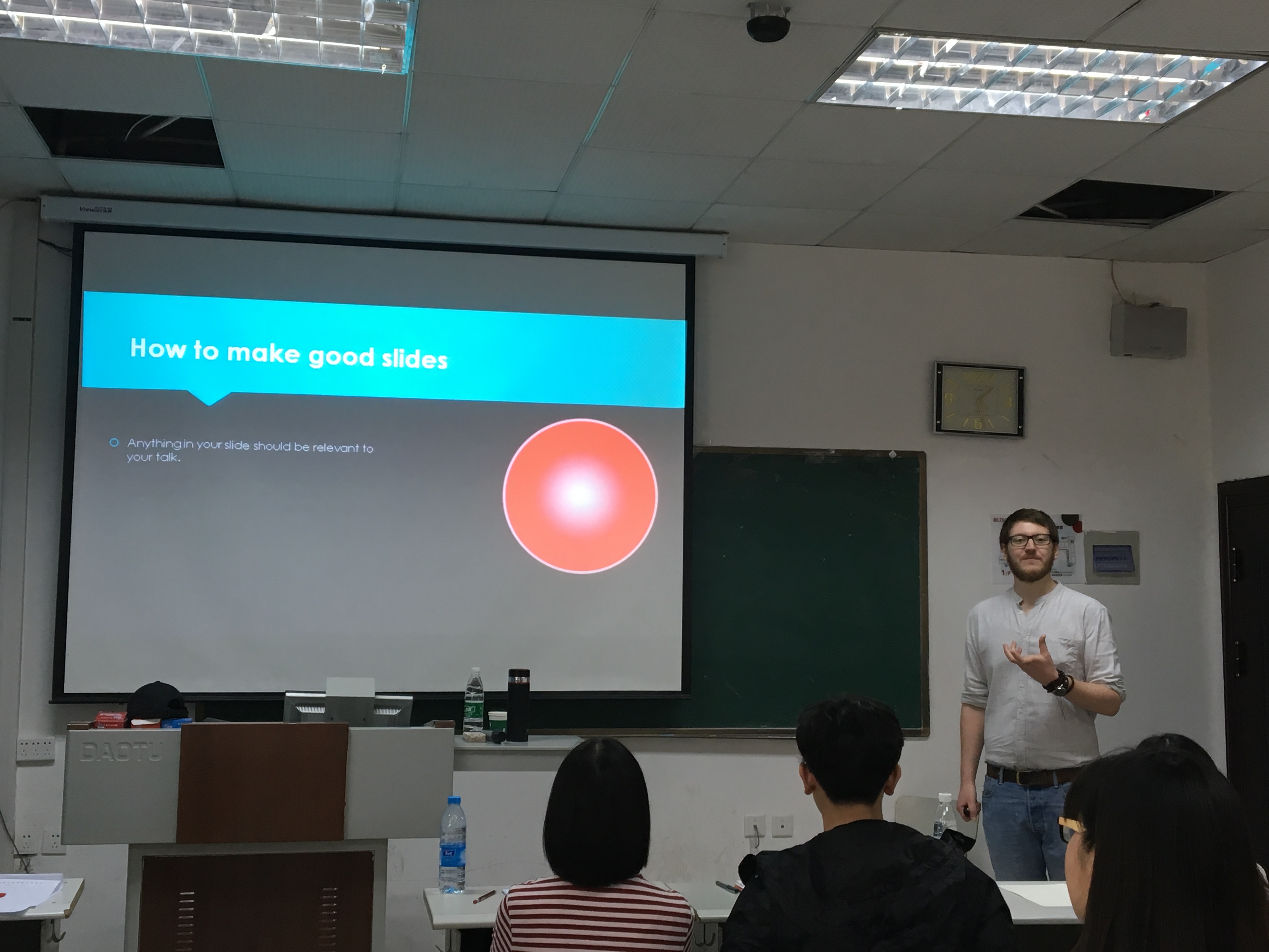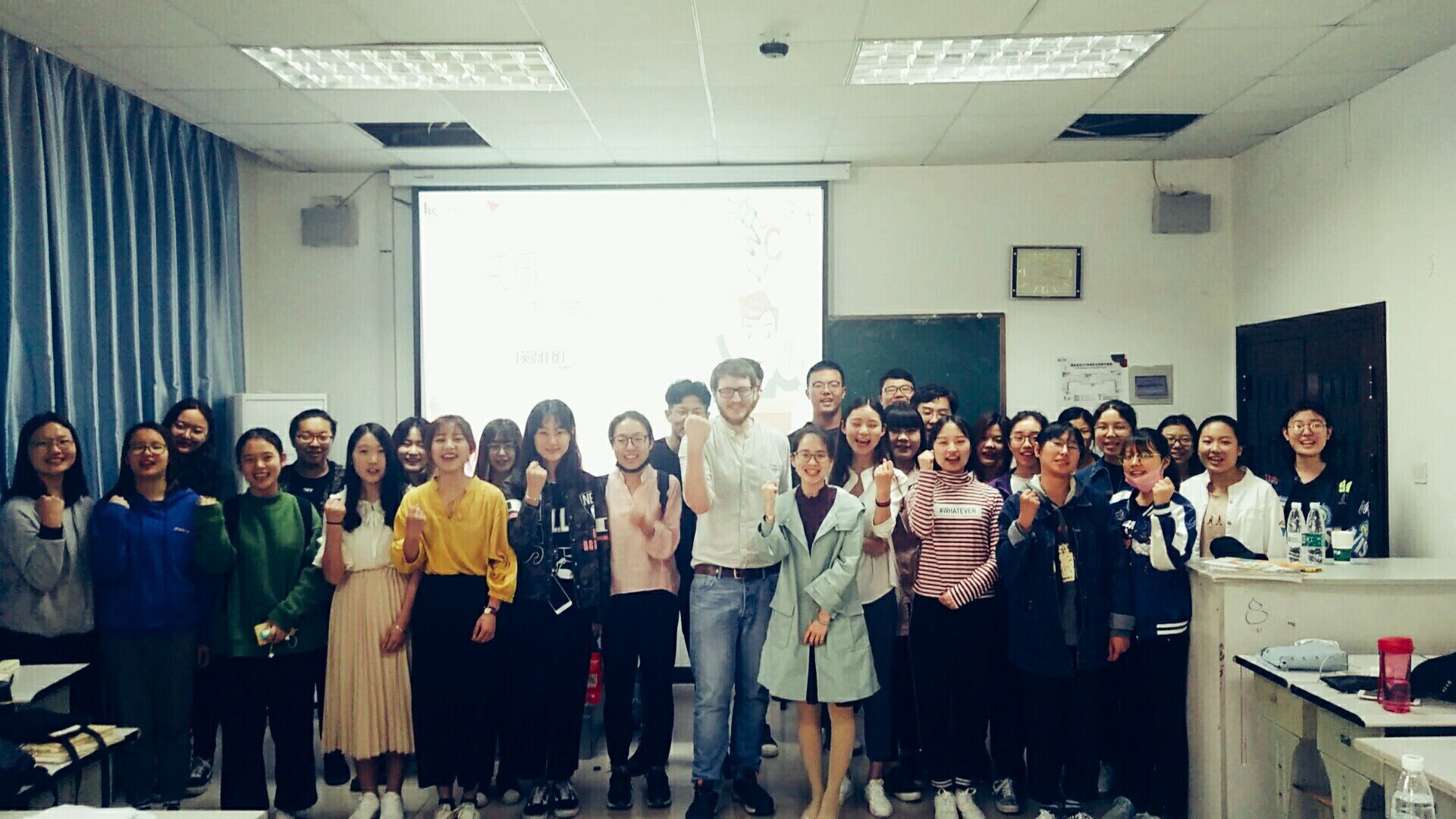 讲座中,lain Arnott为大家讲解了演讲的基本技巧及注意事项,分析了演讲的仪表要求,展示了一位优秀演讲者在动作、表情、声音等各方面应具备的素质。lain Arnott积极与在场学生互动,认真解答学生问题,讲座取得了良好效果。培训结束后,龙比亚杯参赛选手一起喊出了“2018 Napier Cup English Speech Contest, Fighting!”口号,充分表现了同学们对2018龙比亚杯英语演讲比赛成功举办的信心。