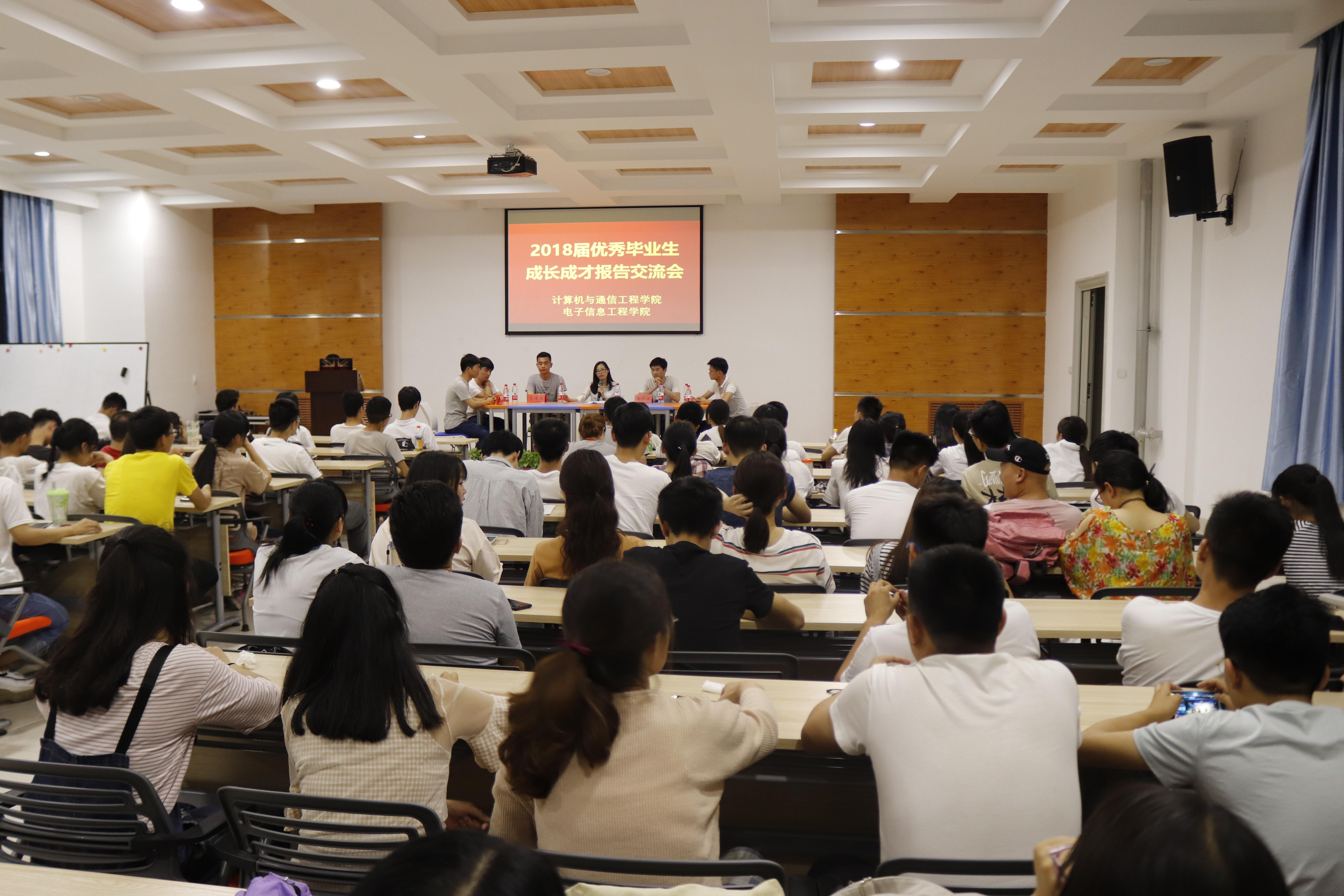 为引导学生树立远大理想和信念,充分发挥学院优秀学生模范带头作用。计算机与通信工程学院(电子信息工程学院)于6月11日晚,在科学校区星空众创空间(工程实训楼)206举办了2018届优秀毕业生成长成才报告交流会。2018届毕业生中考研、就业中的佼佼者12人,其中包含一个优秀考研宿舍作为本次成长成才报告交流会的分享嘉宾,学院大一、大二、大三部分优秀学生代表参加了此次交流会,交流会由学院就业专职辅导员欧阳老师主持。