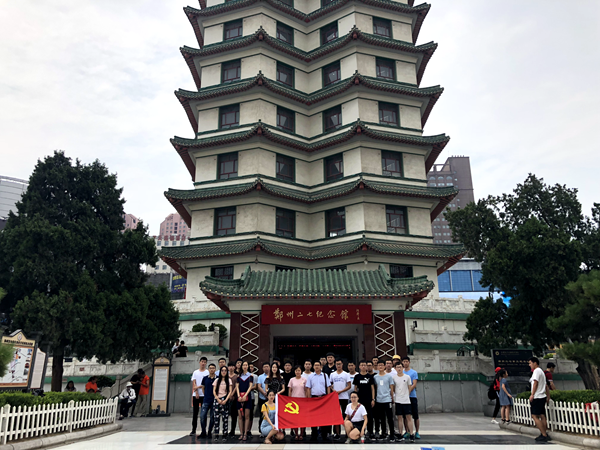 出发前,学院全体党员在党旗下郑重宣誓,然后集体前往二七广场。登上二七塔,在解说员的讲解下,同学们对这场工人运动的起因、经过、结果有了由浅入深的了解,看着墙上陈列的物品以及播放的视频,仿佛看到了革命先烈同反动势力进行英勇顽强的斗争的画面;看到军阀杀害郑州分会负责人汪胜发、司文德,并将二位烈士的头颅悬挂在长春桥电线杆上的图片和文字时,同学们都表现出了对军阀的强烈愤怒;一幅幅的图片让同学们驻足,对那些革命先烈致以最高的崇敬和尊重,学习他们英勇、团结、牺牲、奉献的“二七精神”。